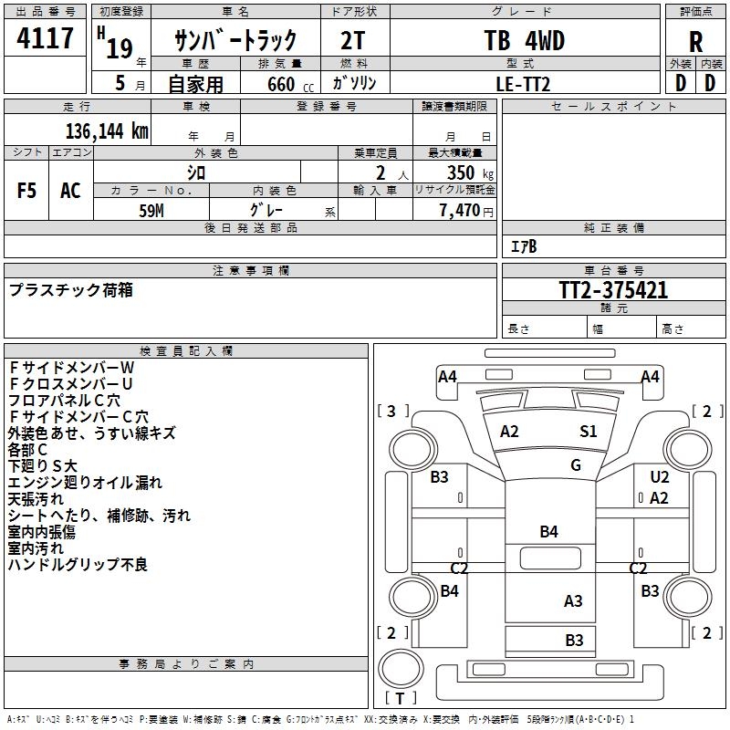 SUBARU SAMBAR TRUCK TB 4WD - лот 4117