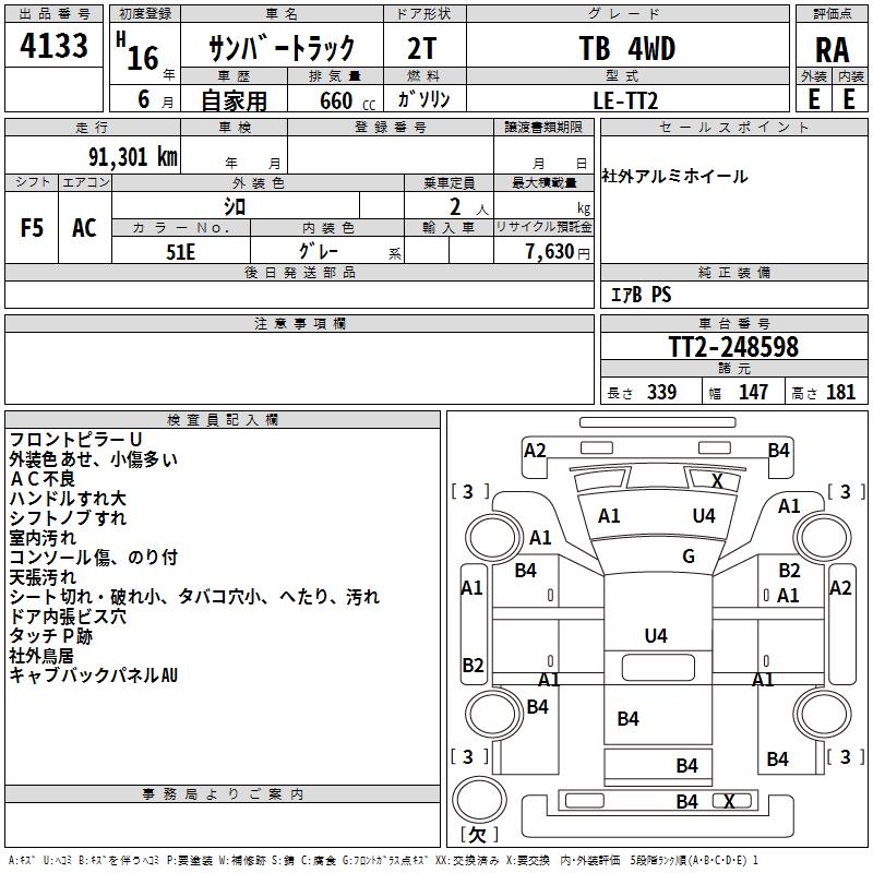 SUBARU SAMBAR TRUCK TB 4WD - лот 4133