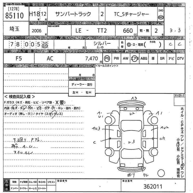 SUBARU SAMBAR TRUCK TC_S CHARGER - лот 85110