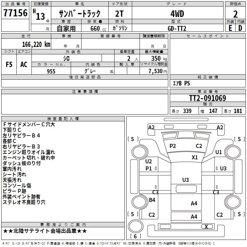SUBARU SAMBAR TRUCK 4WD - лот 77156