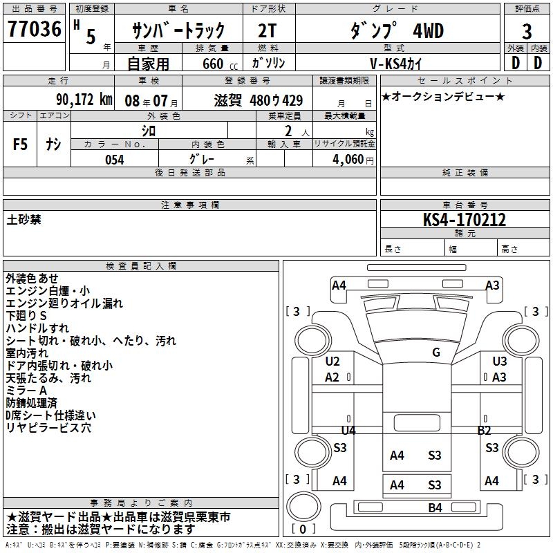 SUBARU SAMBAR TRUCK DUMP 4WD - лот 77036