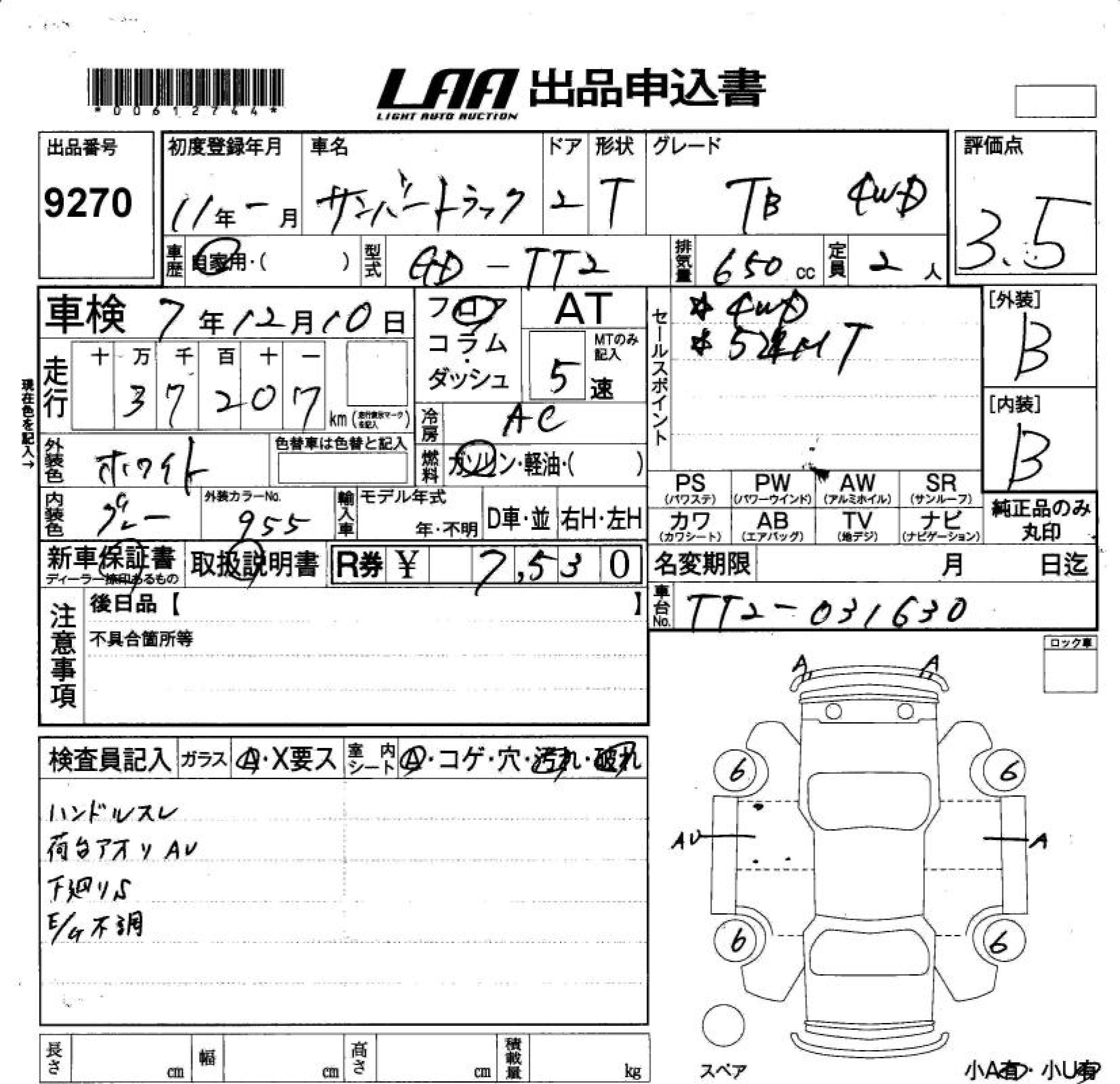 SUBARU SAMBAR TRUCK TB 4WD - лот 9270