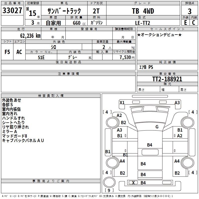 SUBARU SAMBAR TRUCK TB 4WD - лот 33027
