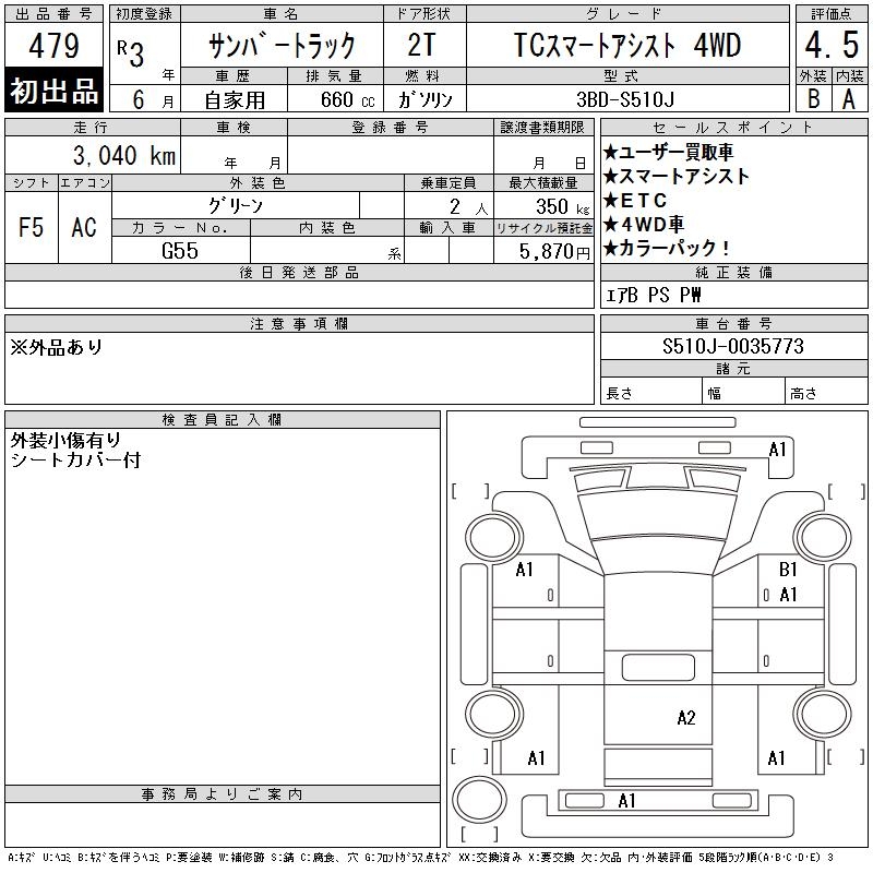 SUBARU SAMBAR TRUCK TC SMART ASSIST 4WD - лот 479