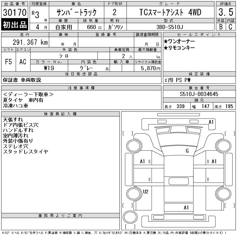 SUBARU SAMBAR TRUCK TC SMART ASSIST 4WD - лот 30170