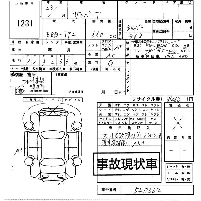 SUBARU SAMBAR TRUCK - лот 1231