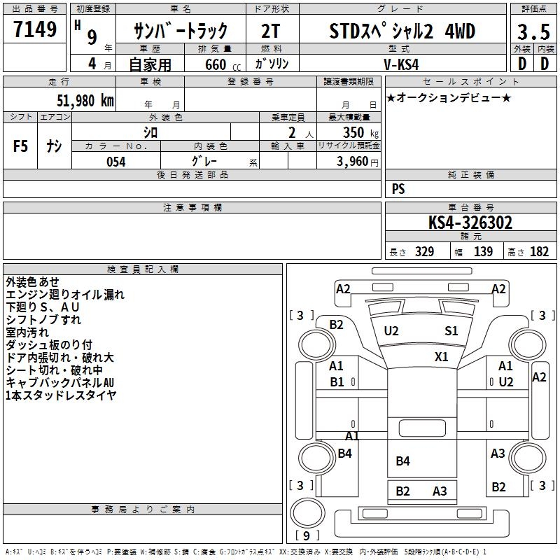 SUBARU SAMBAR TRUCK STD SPECIAL 2 4WD - лот 7149