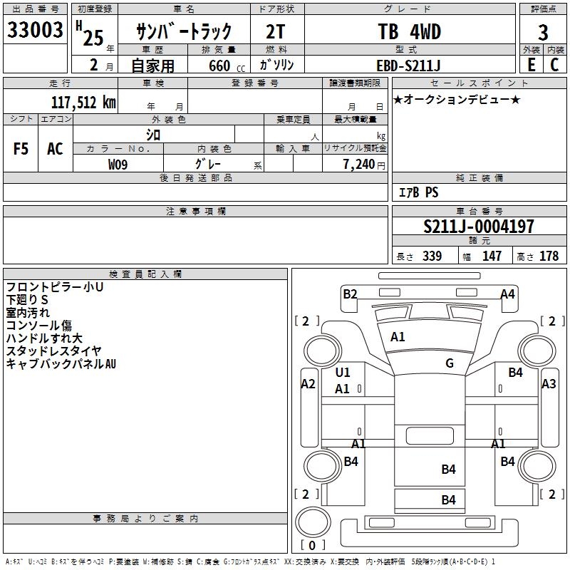 SUBARU SAMBAR TRUCK TB 4WD - лот 33003