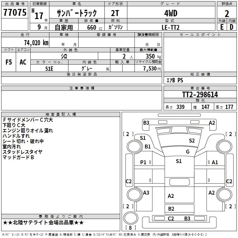 SUBARU SAMBAR TRUCK 4WD - лот 77075