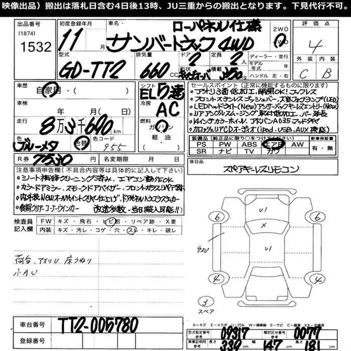 SUBARU SAMBAR TRUCK 4WD LOW PANEL USE - лот 1532