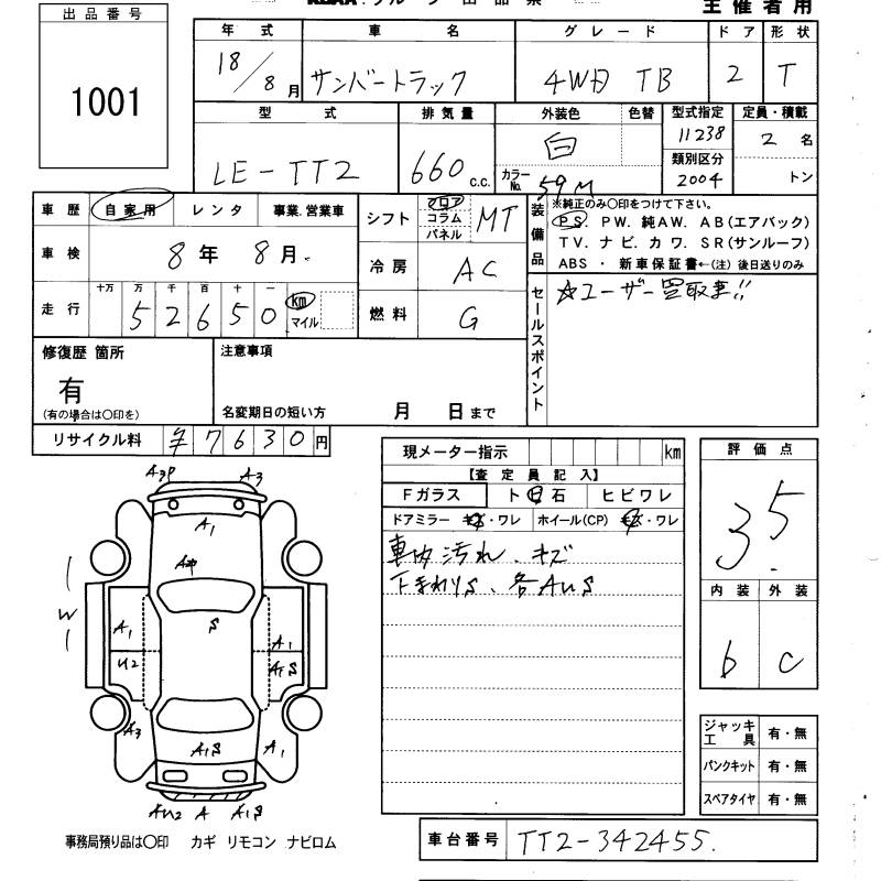 SUBARU SAMBAR TRUCK TB - лот 1001