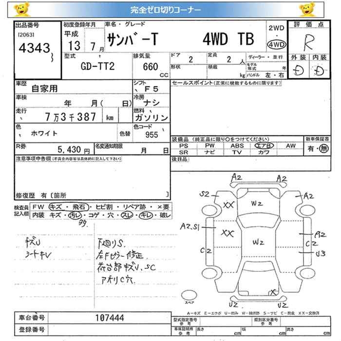 SUBARU SAMBAR TRUCK 4WD TB - лот 4343