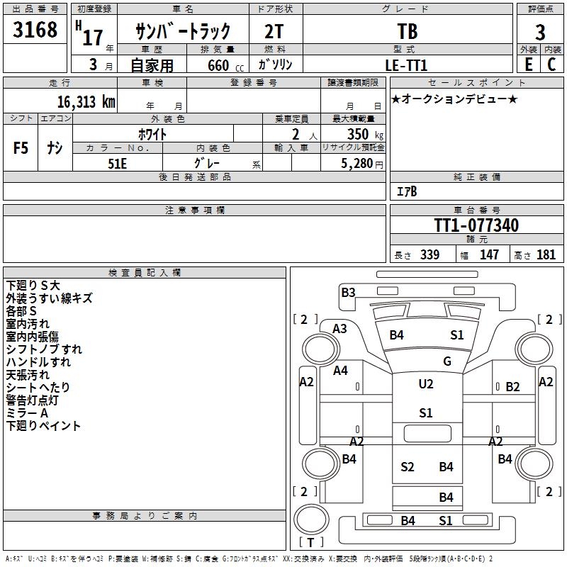 SUBARU SAMBAR TRUCK TB - лот 3168
