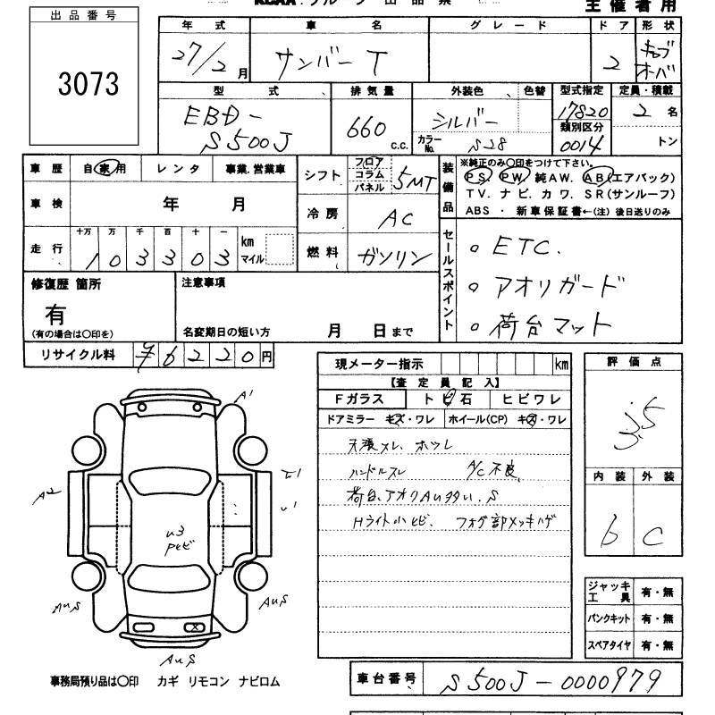 SUBARU SAMBAR TRUCK - лот 3073