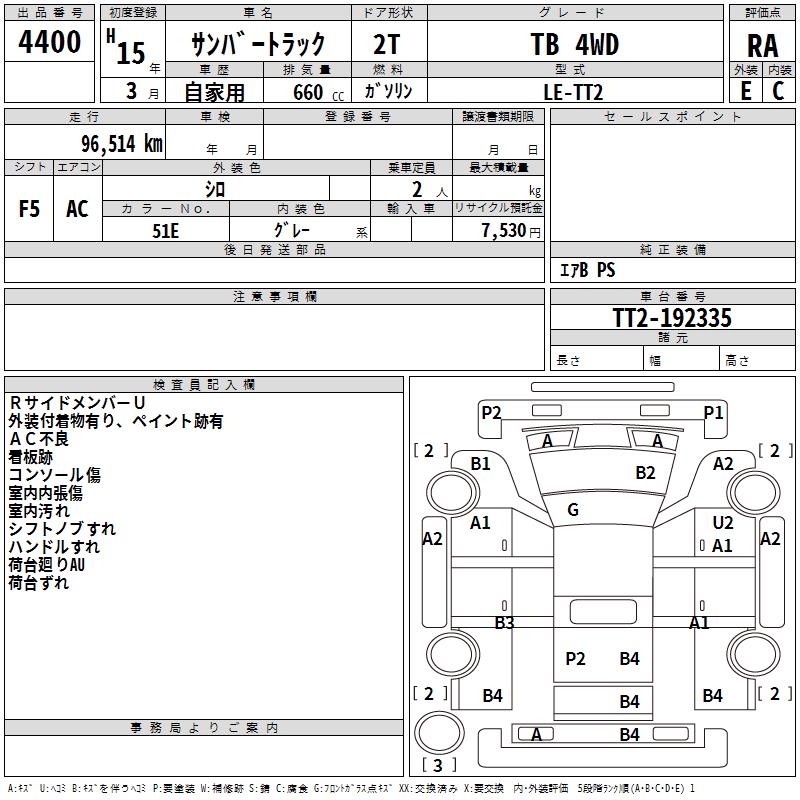 SUBARU SAMBAR TRUCK TB 4WD - лот 4400