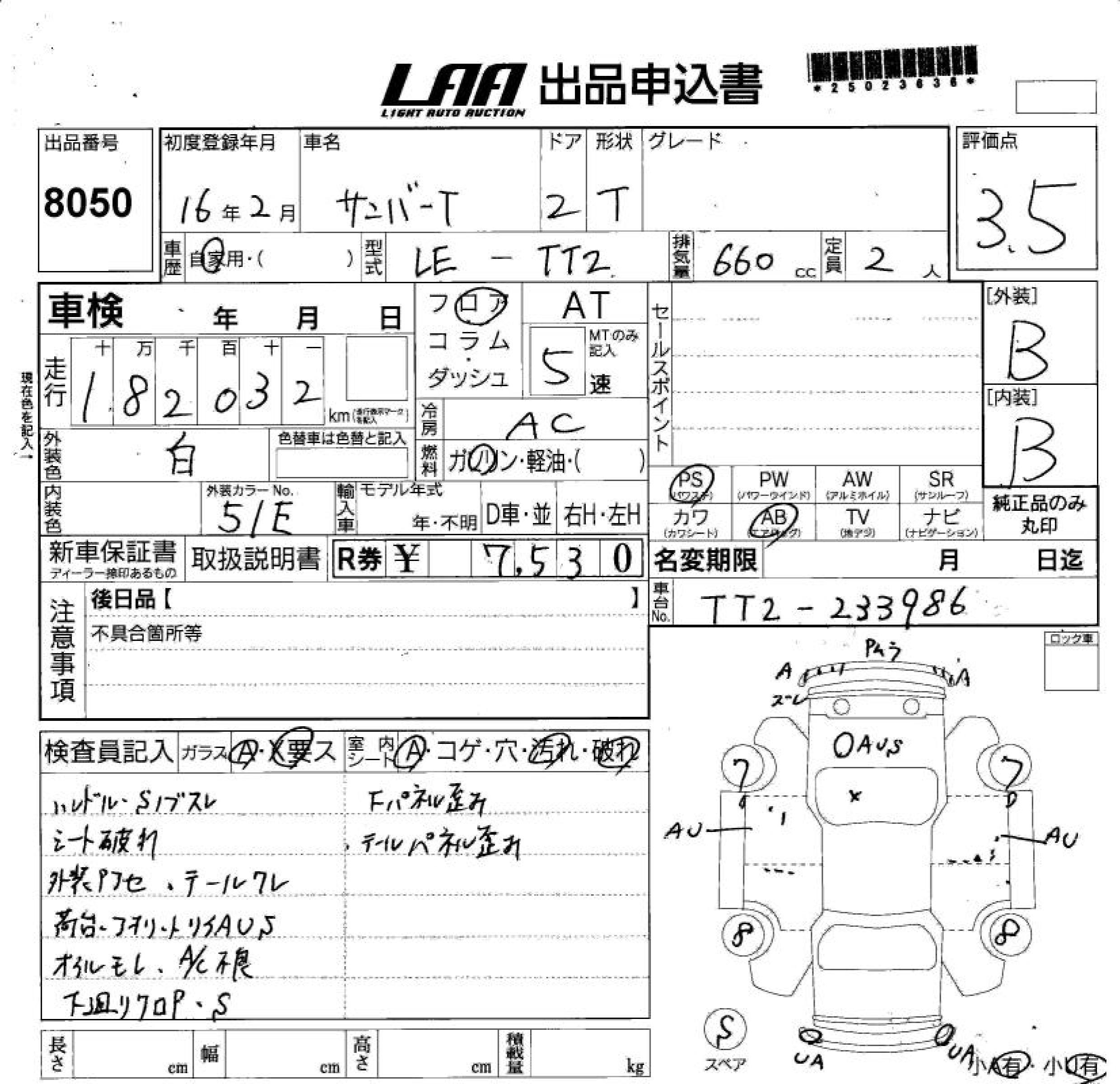 SUBARU SAMBAR TRUCK - лот 8050