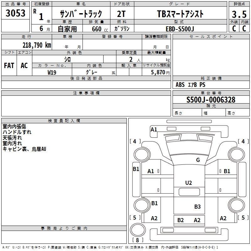 SUBARU SAMBAR TRUCK TB SMART ASSIST - лот 3053