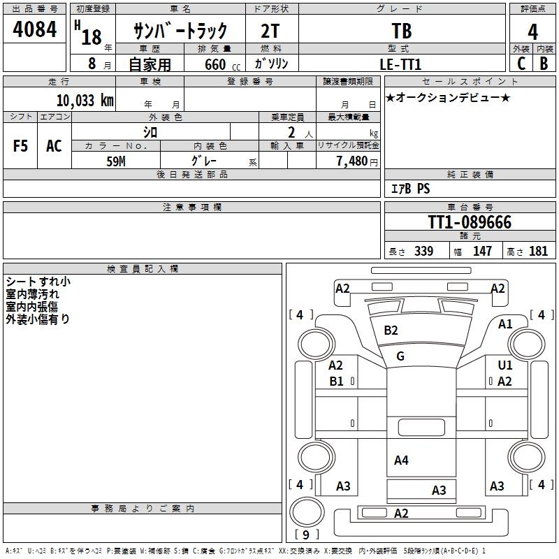 SUBARU SAMBAR TRUCK TB - лот 4084