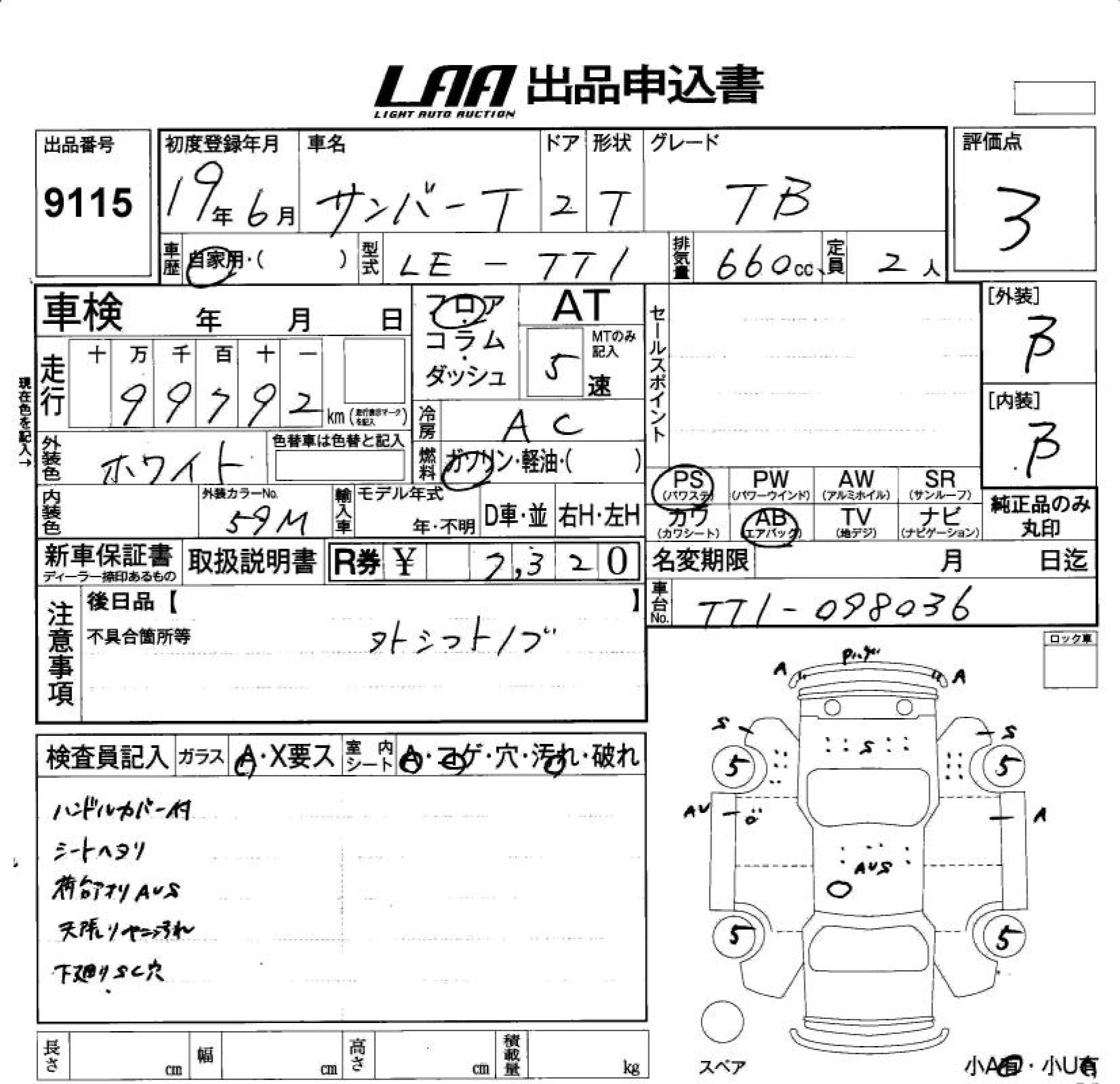 SUBARU SAMBAR TRUCK TB - лот 9115