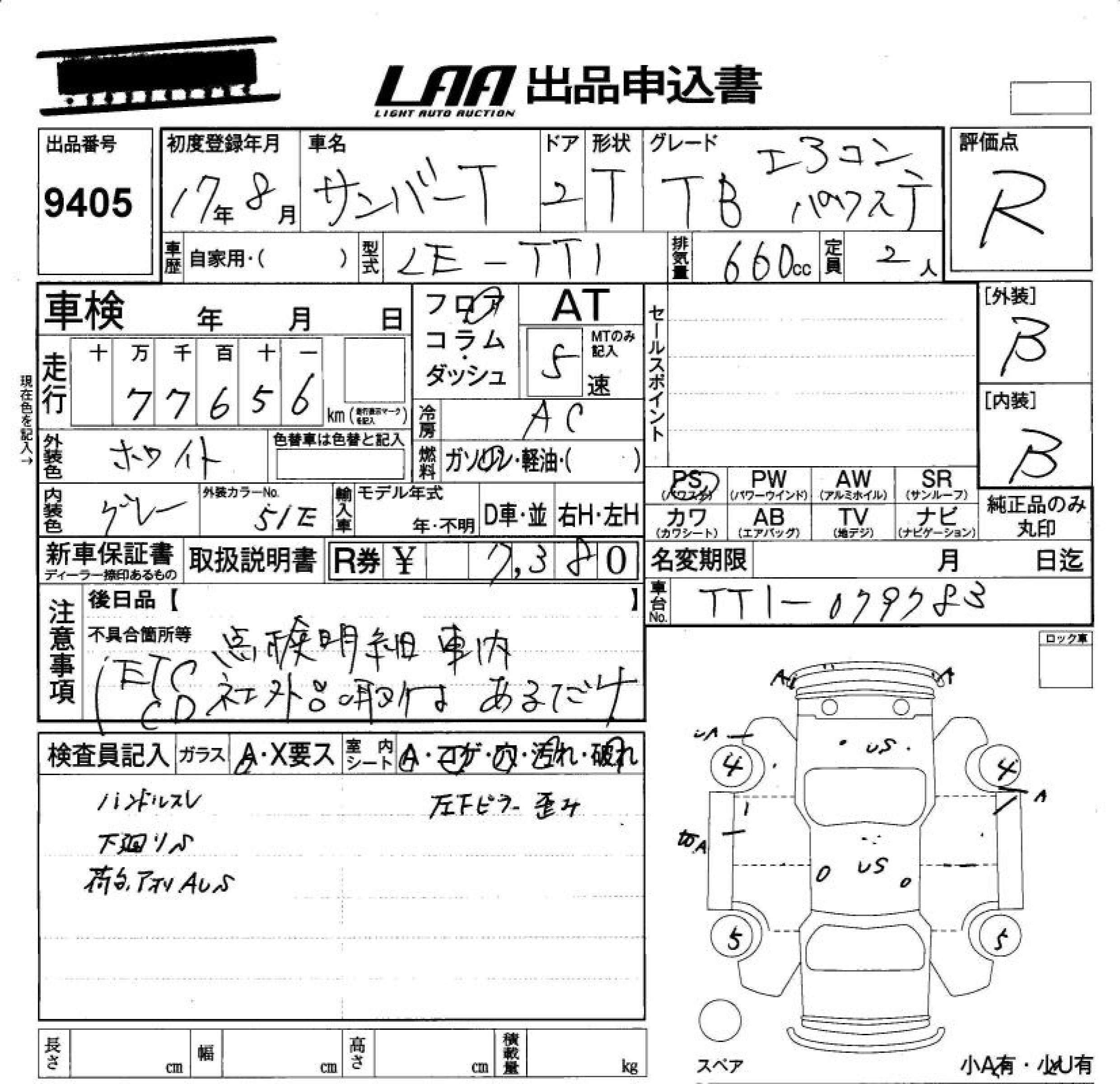 SUBARU SAMBAR TRUCK TB AIR CONDITIONER POWER STEERING - лот 9405