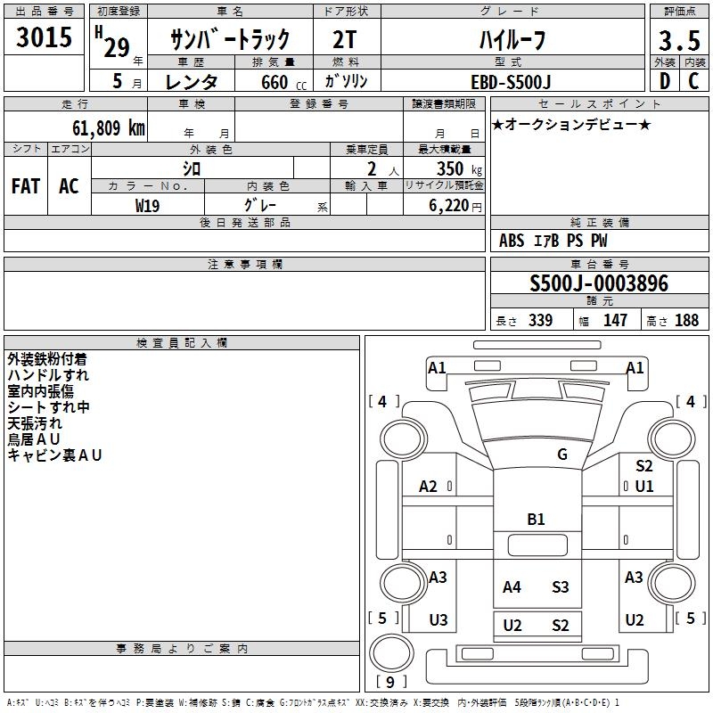 SUBARU SAMBAR TRUCK HIGH ROOF - лот 3015
