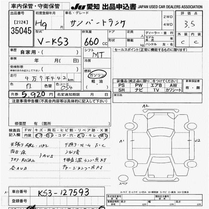 SUBARU SAMBAR TRUCK - лот 35045