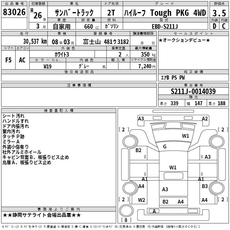 SUBARU SAMBAR TRUCK HIGH ROOF TOUGH PKG 4WD - лот 83026