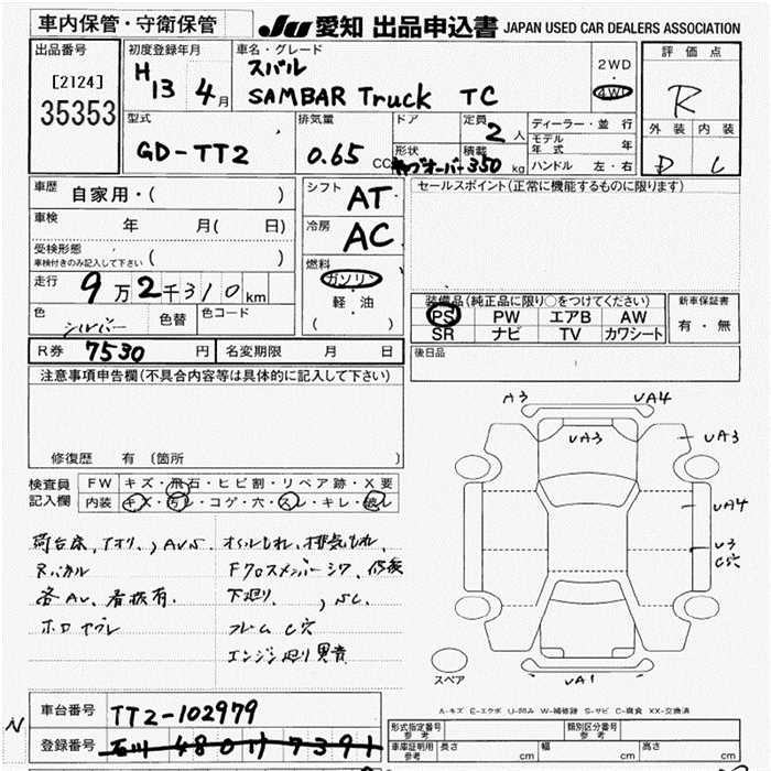 SUBARU SAMBAR TRUCK TC 4WD - лот 35353