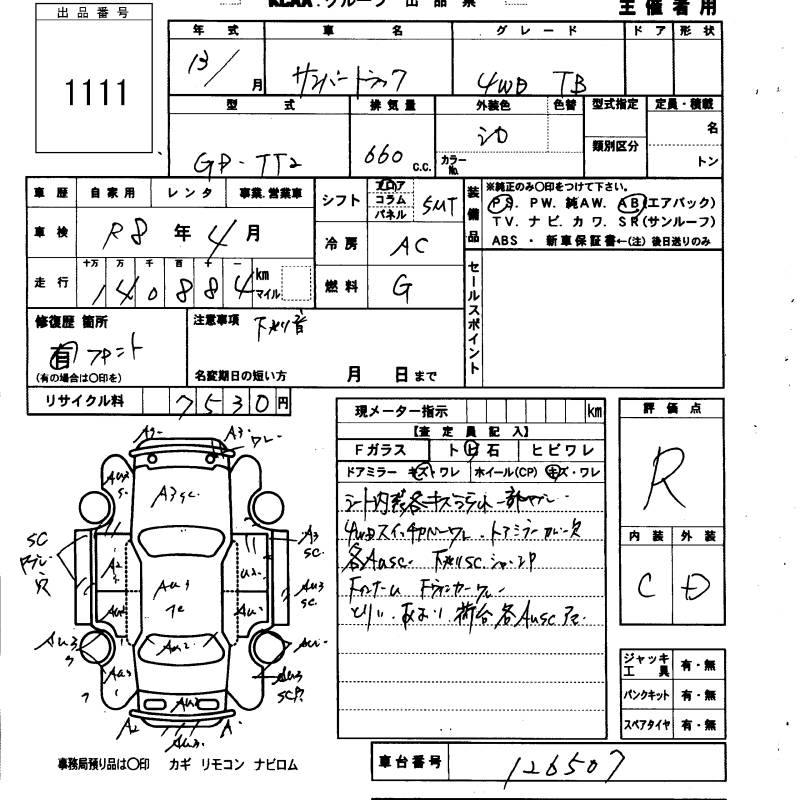 SUBARU SAMBAR TRUCK TB - лот 1111