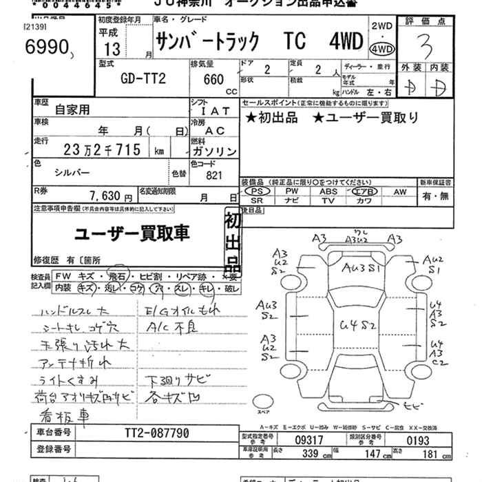 SUBARU SAMBAR TRUCK TC 4WD - лот 6990