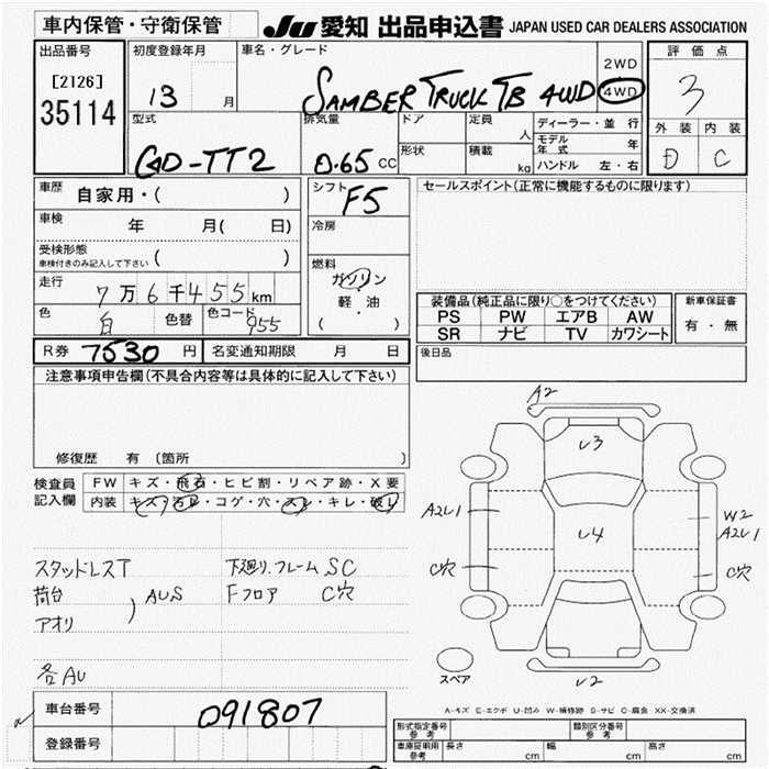 SUBARU SAMBAR TRUCK TB 4WD - лот 35114