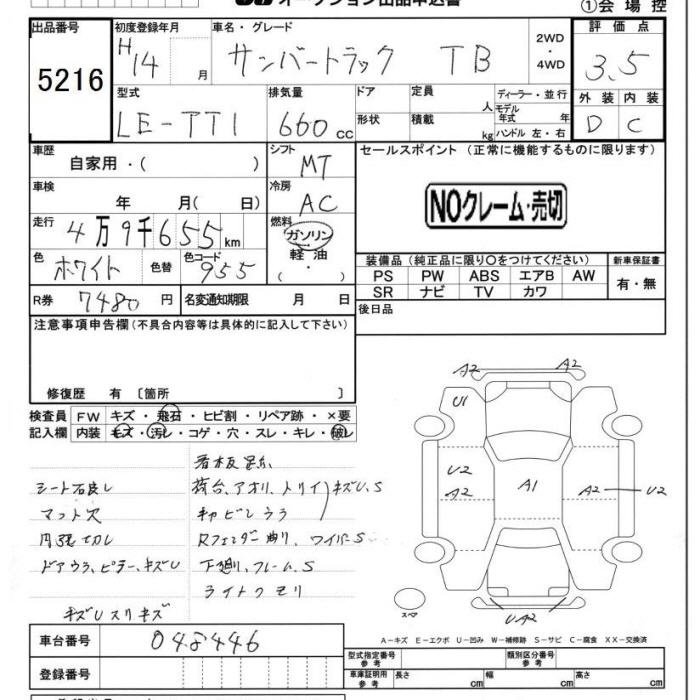SUBARU SAMBAR TRUCK TB - лот 5216