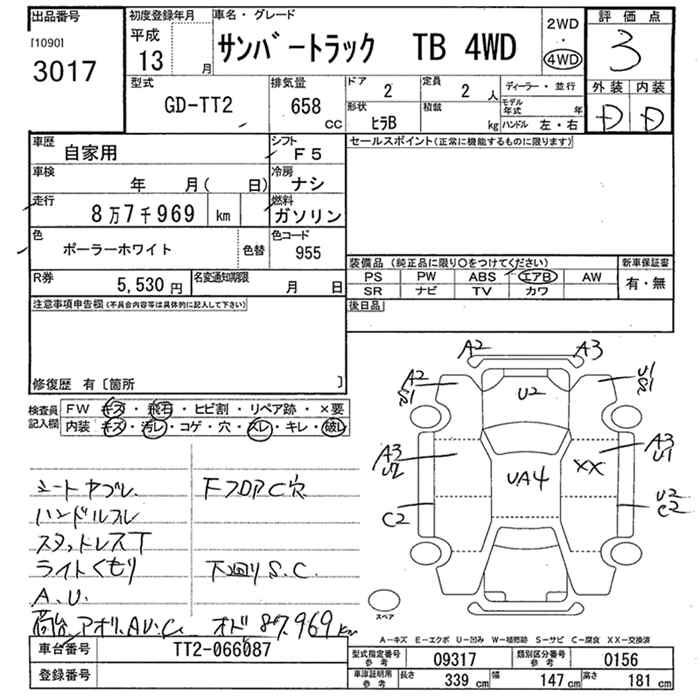 SUBARU SAMBAR TRUCK 4WD TB - лот 3017