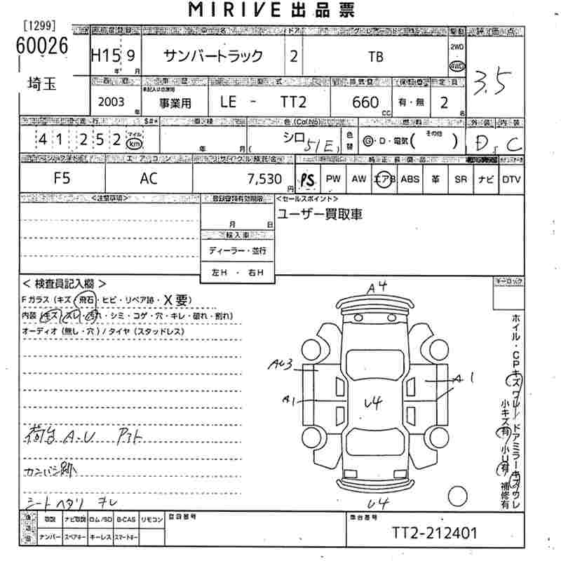 SUBARU SAMBAR TRUCK TB - лот 60026