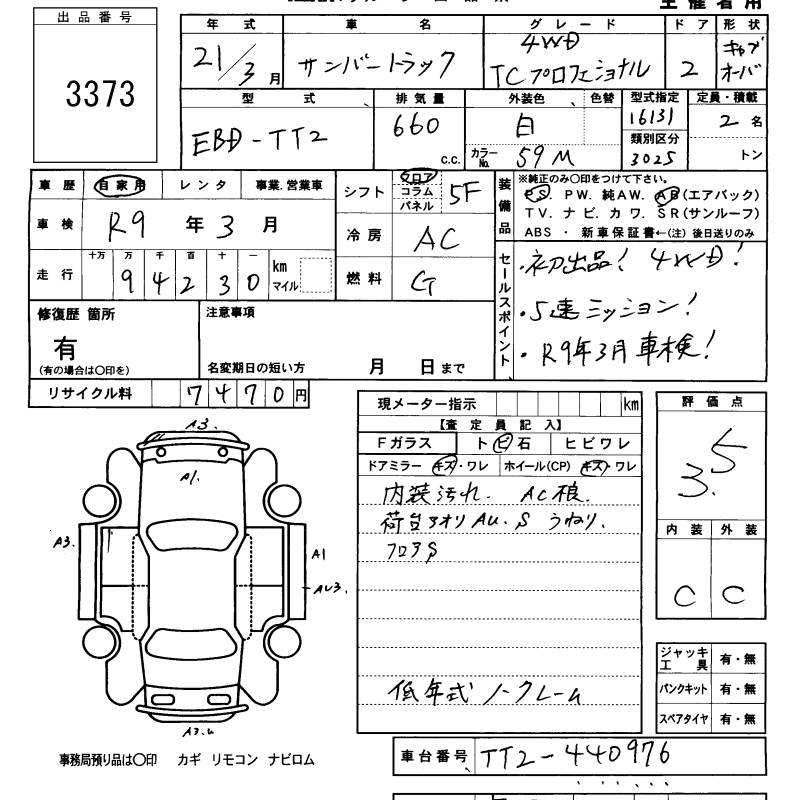 SUBARU SAMBAR TRUCK TC PROFESSIONAL 4WD - лот 3373