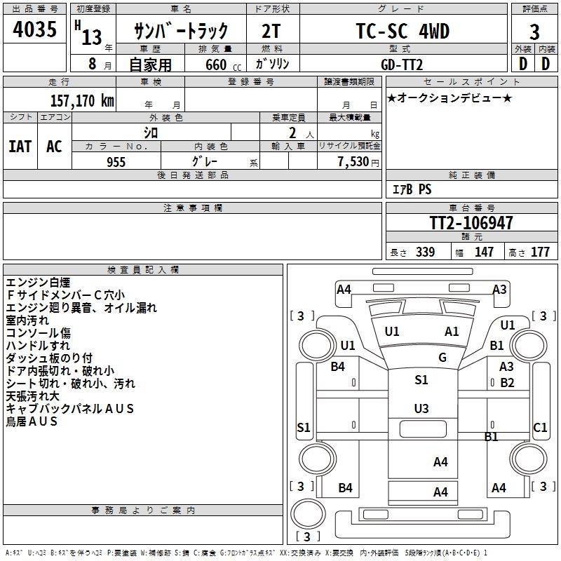 SUBARU SAMBAR TRUCK TC-SC 4WD - лот 4035