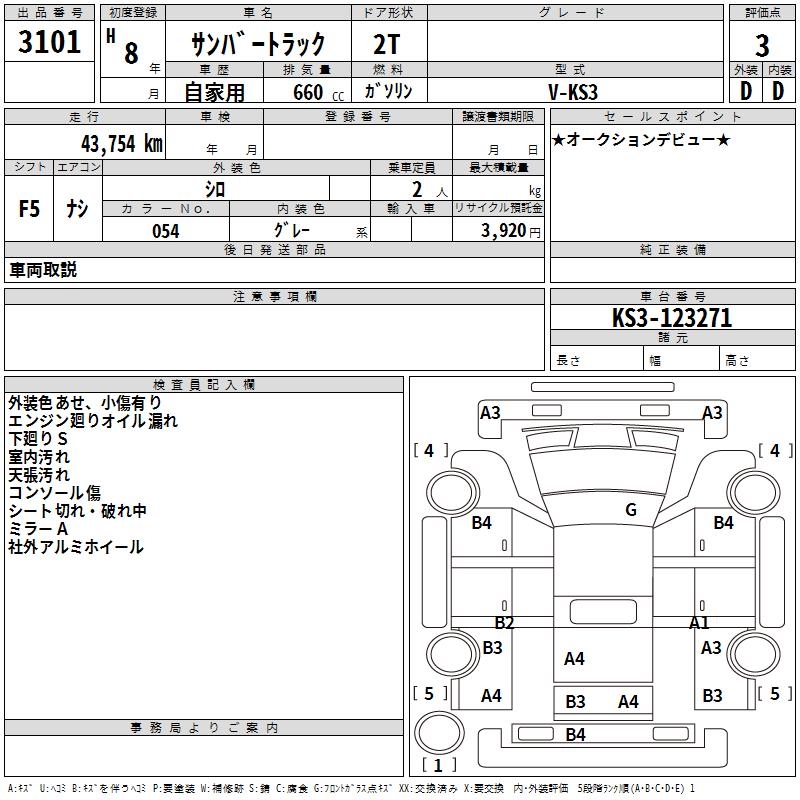 SUBARU SAMBAR TRUCK - лот 3101