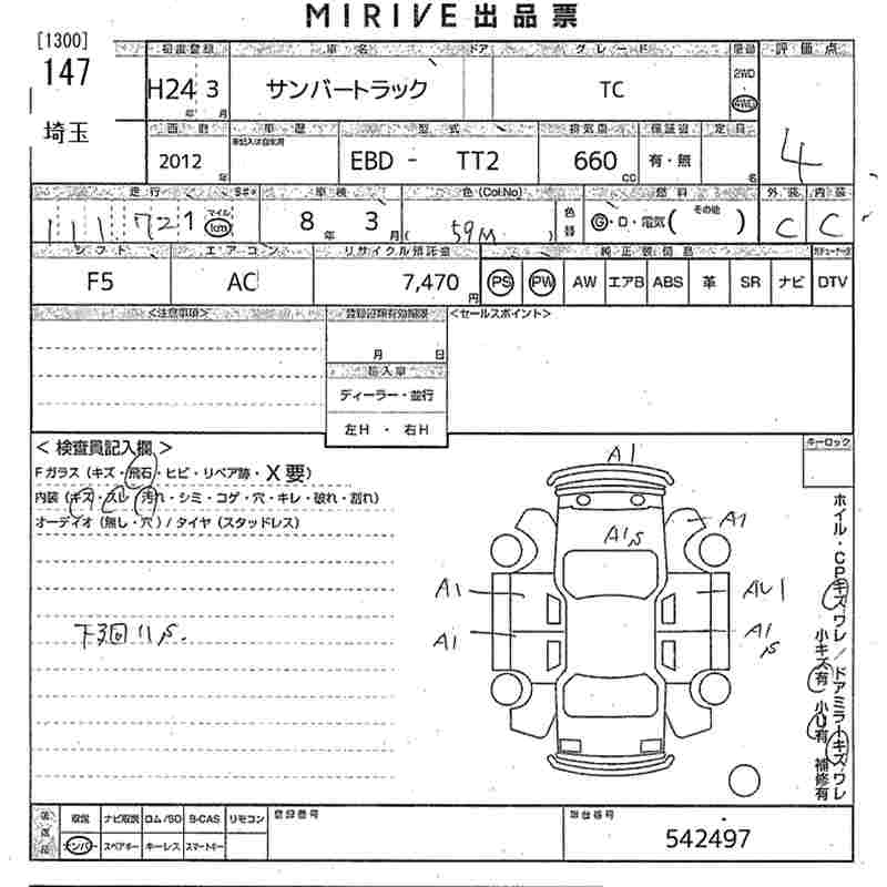 SUBARU SAMBAR TRUCK TC - лот 147