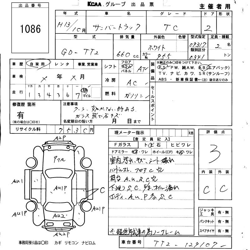 SUBARU SAMBAR TRUCK TC - лот 1086