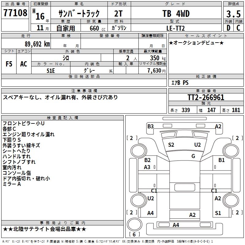 SUBARU SAMBAR TRUCK TB 4WD - лот 77108