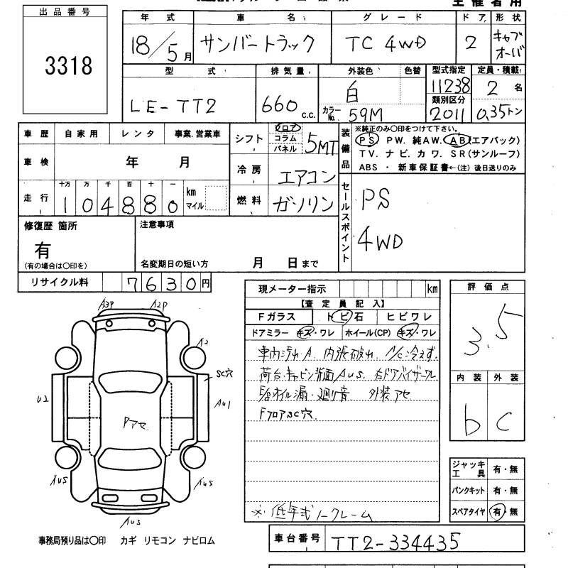 SUBARU SAMBAR TRUCK - лот 3318
