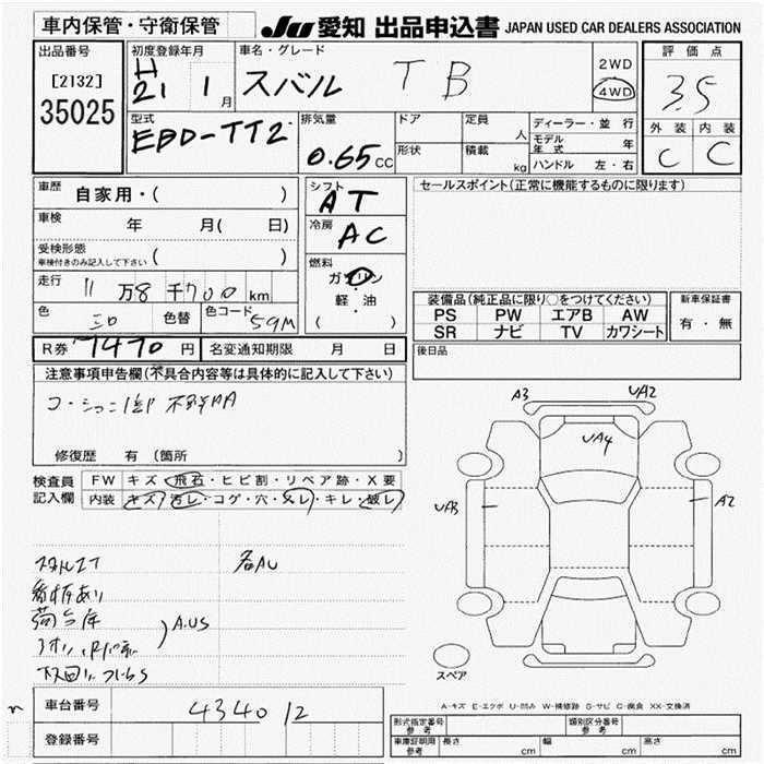 SUBARU SAMBAR TRUCK TB 4WD - лот 35025