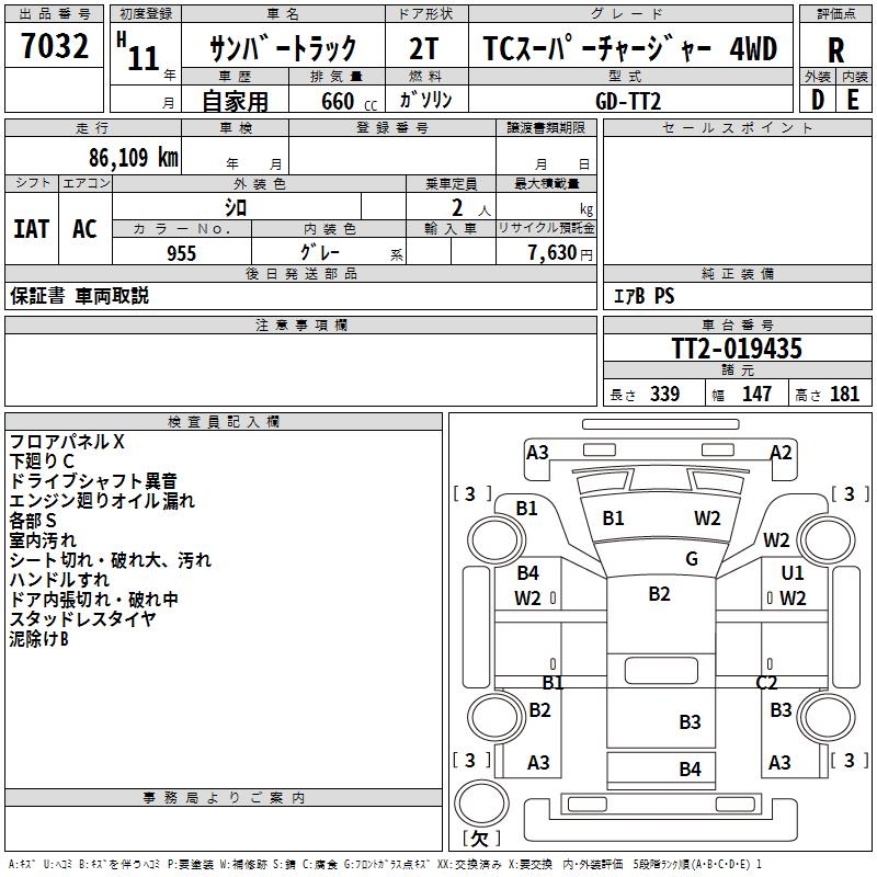 SUBARU SAMBAR TRUCK - лот 7032