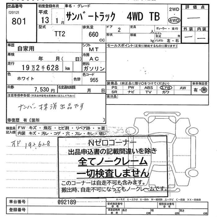 SUBARU SAMBAR TRUCK - лот 801