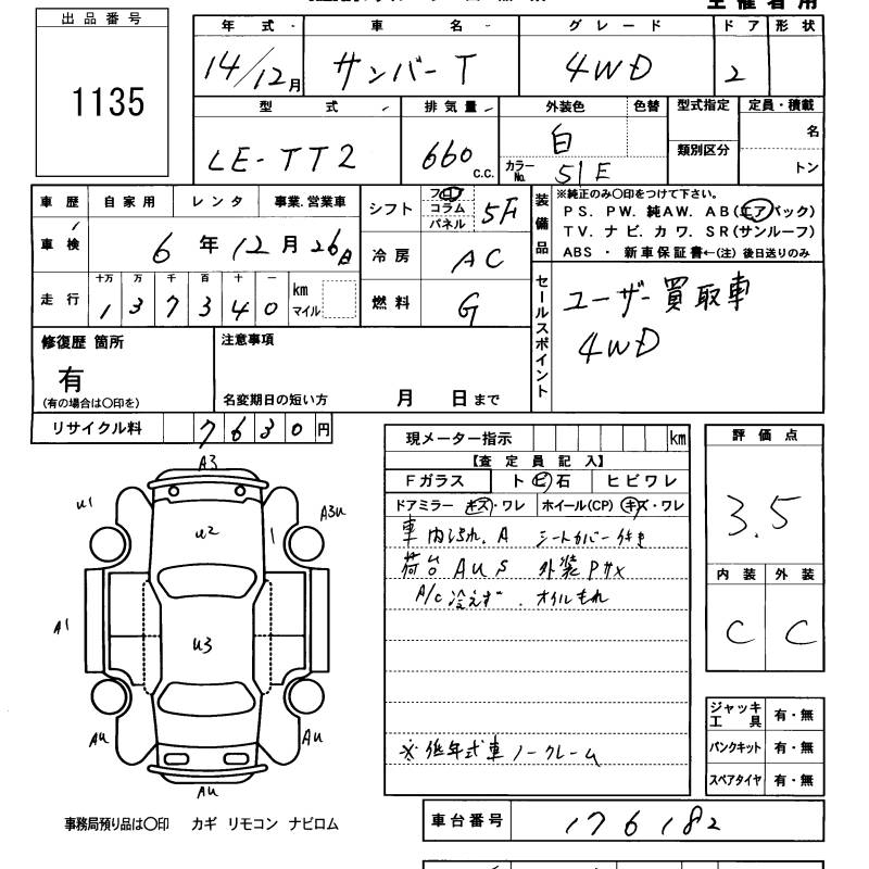 SUBARU SAMBAR TRUCK - лот 1135