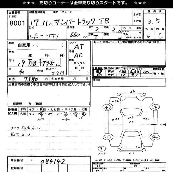 SUBARU SAMBAR TRUCK - лот 8001