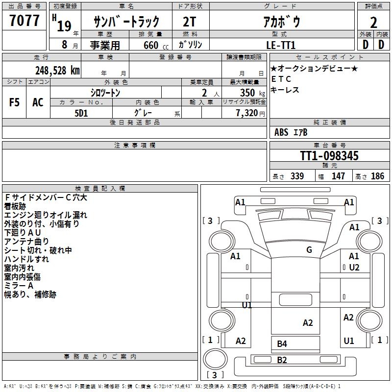 SUBARU SAMBAR TRUCK - лот 7077