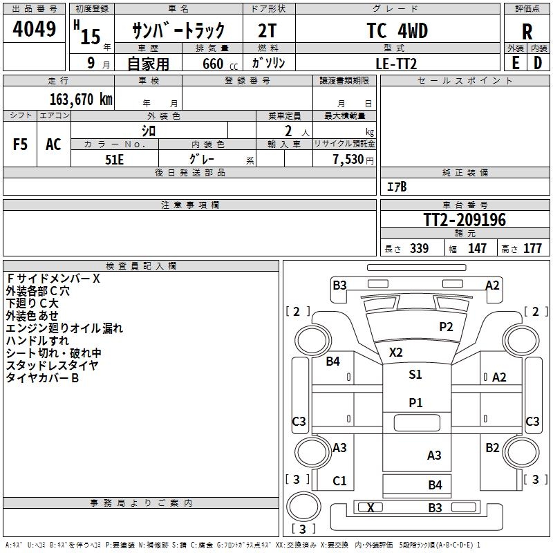 SUBARU SAMBAR TRUCK TC 4WD - лот 4049