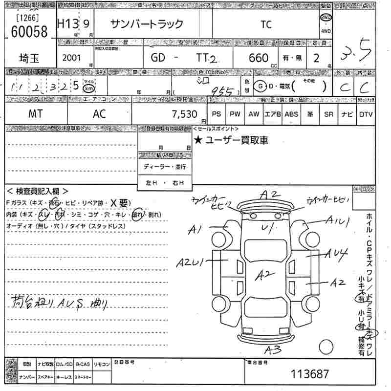 SUBARU SAMBAR TRUCK TC - лот 60058