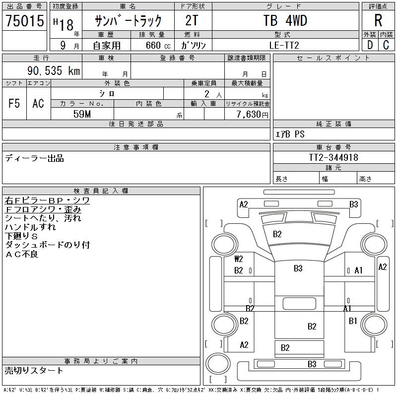 SUBARU SAMBAR TRUCK TB 4WD - лот 75015
